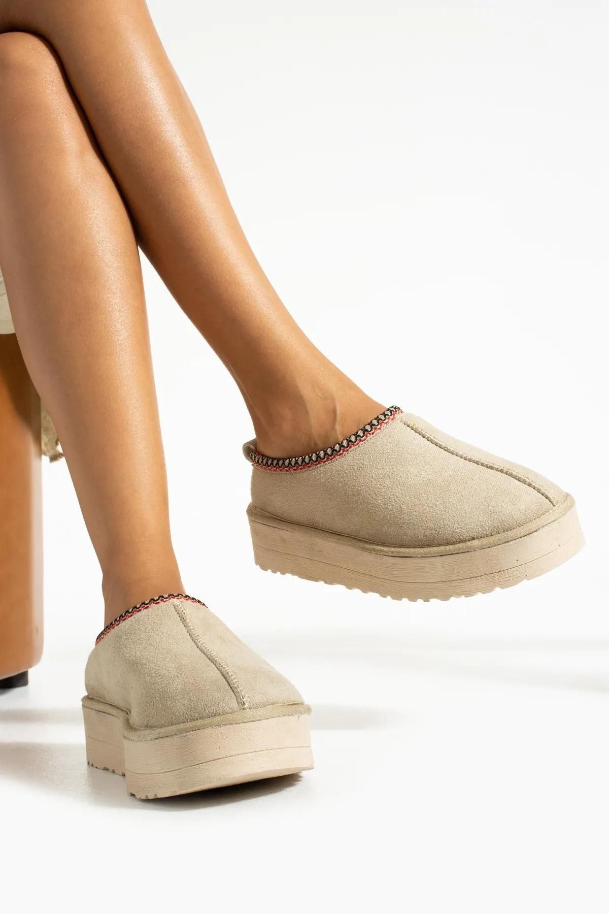 Soğuk günlerde hem şıklığınızdan ödün vermeyin hem de sıcacık kalın. Taba tonlarının doğallığıyla dikkat çeken bu kısa bot, yumuşak dokulu süet yüzeyi ve iç kısmındaki sıcak tutan astarıyla gün boyu konfor sunar. Hafif ve dayanıklı EVA tabanı sayesinde yürüyüşlerinizde sizi yormaz, yüksek taban yapısı ise modern bir silüet kazandırır. Bilek hizasında biten formu günlük kombinlerinize kolayca uyum sağlar. Günlük şehir temposuna ayak uydurmak isteyenler için hem zarif hem pratik bir tercih.