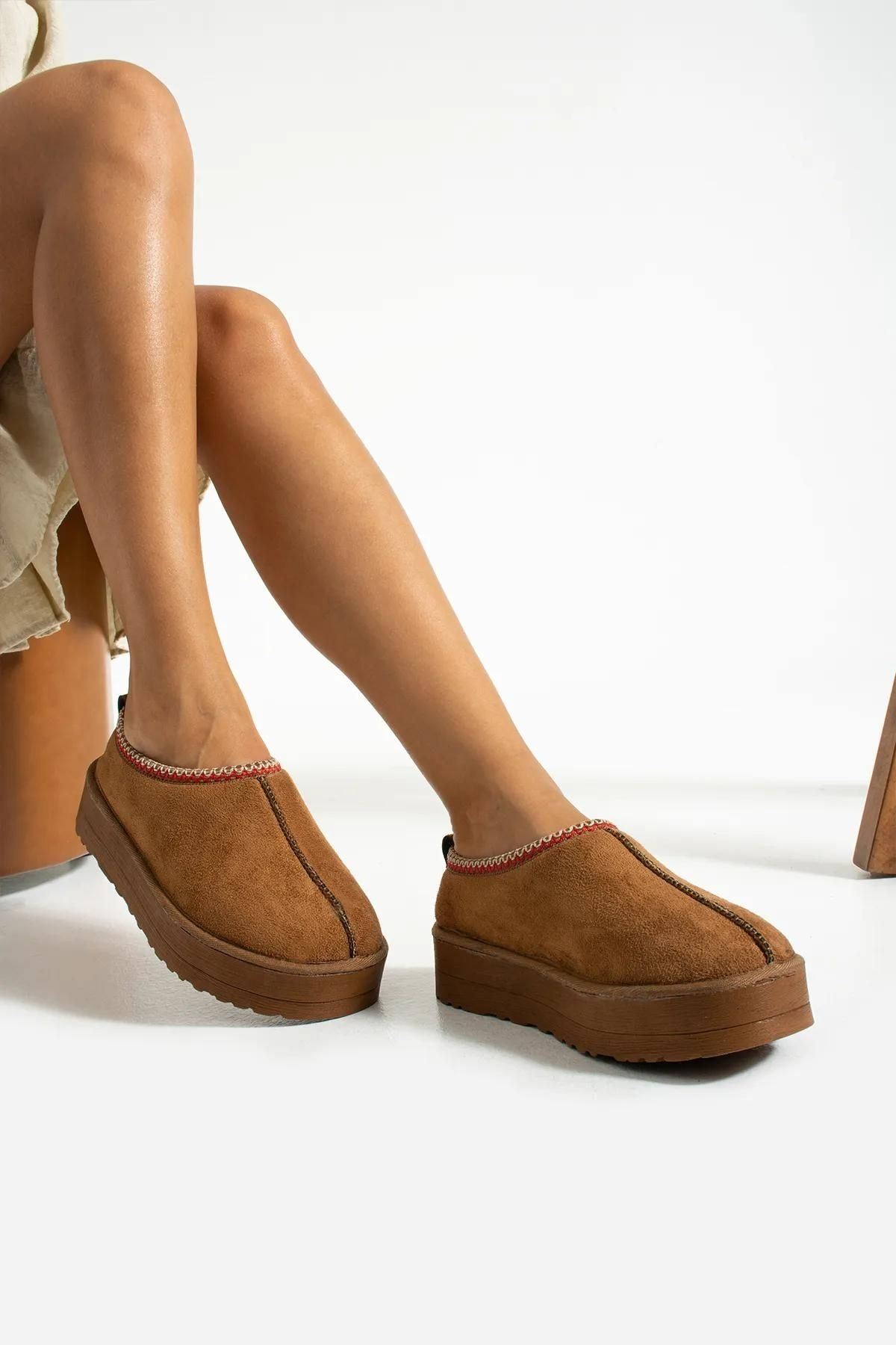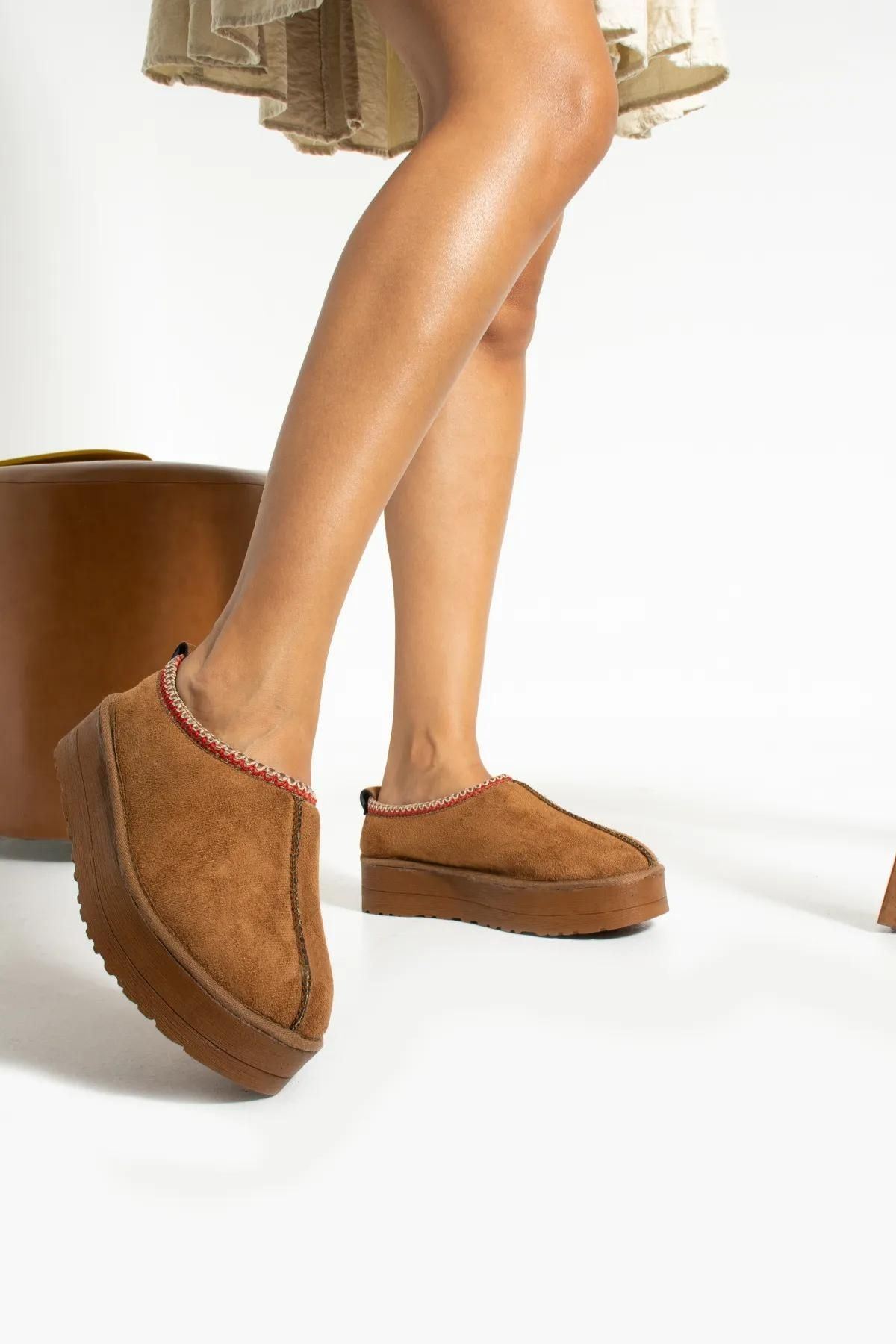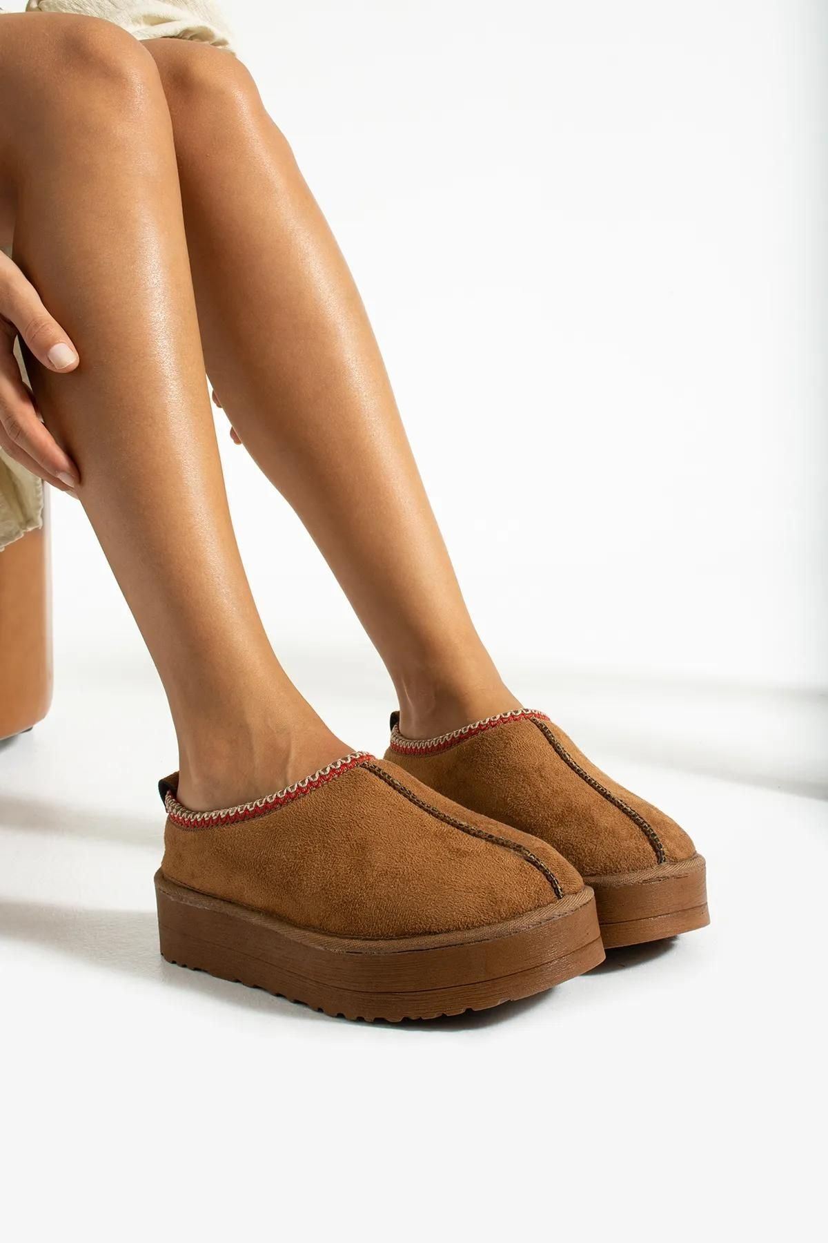 Soğuk günlerde hem şıklığınızdan ödün vermeyin hem de sıcacık kalın. Taba tonlarının doğallığıyla dikkat çeken bu kısa bot, yumuşak dokulu süet yüzeyi ve iç kısmındaki sıcak tutan astarıyla gün boyu konfor sunar. Hafif ve dayanıklı EVA tabanı sayesinde yürüyüşlerinizde sizi yormaz, yüksek taban yapısı ise modern bir silüet kazandırır. Bilek hizasında biten formu günlük kombinlerinize kolayca uyum sağlar. Günlük şehir temposuna ayak uydurmak isteyenler için hem zarif hem pratik bir tercih.