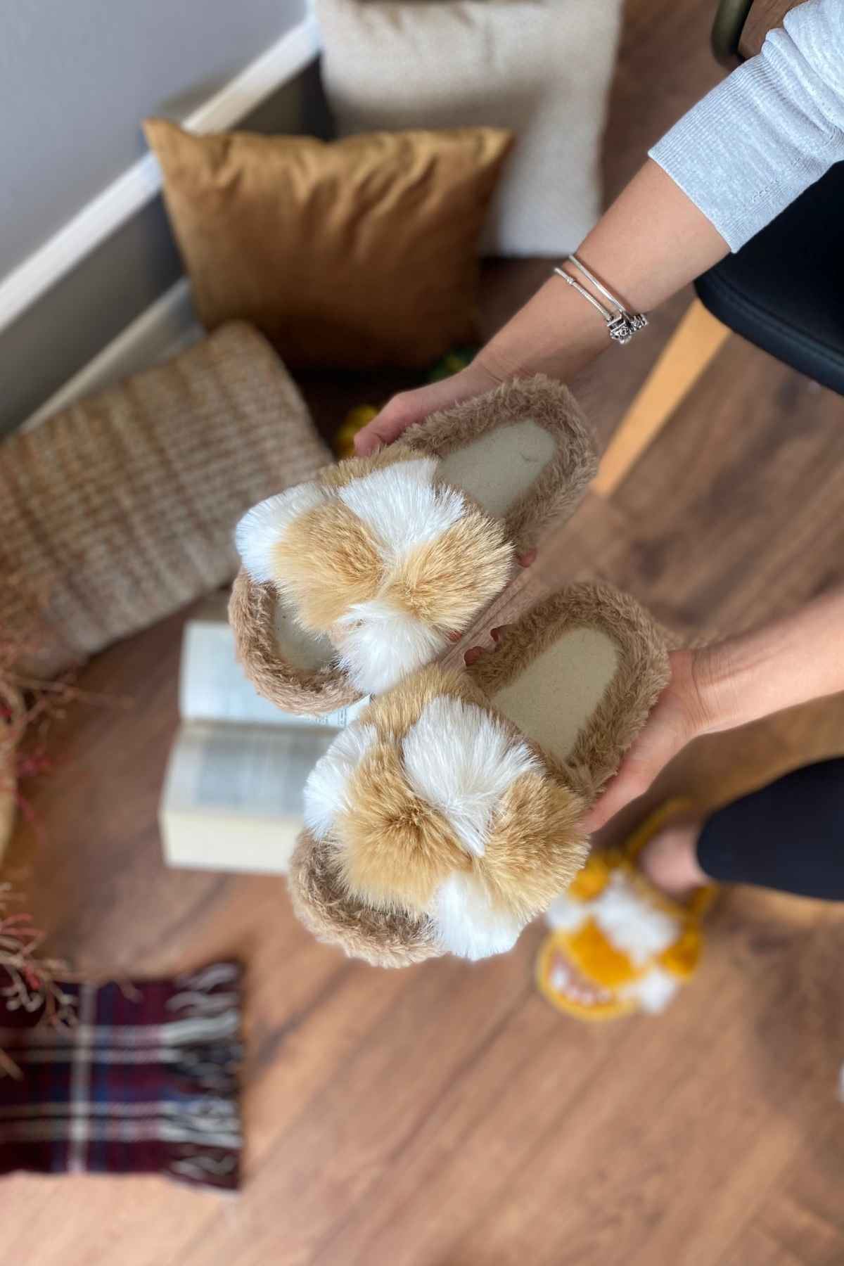 Werner Vizon - Beyaz Tüylü Çapraz Çift Renkli Ev Terliği
