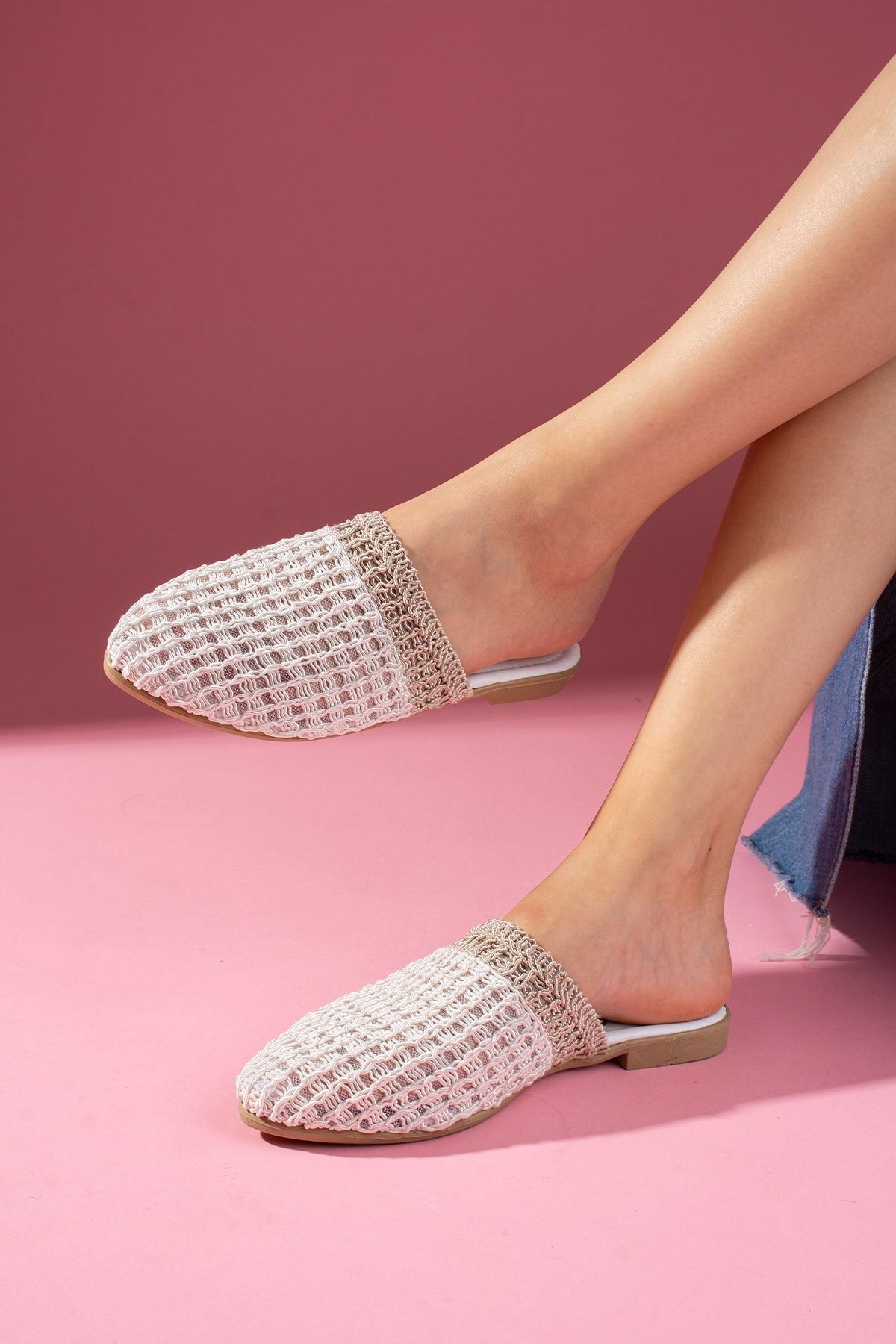 Zarif ve modern tasarımıyla dikkat çeken örgü detaylı kadın terlik modeli, hem şıklığı hem de rahatlığı bir arada sunuyor. Hafif yapısı sayesinde gün boyu konfor sağlarken, çapraz örgü detaylarıyla stilinize sofistike bir dokunuş katıyor.