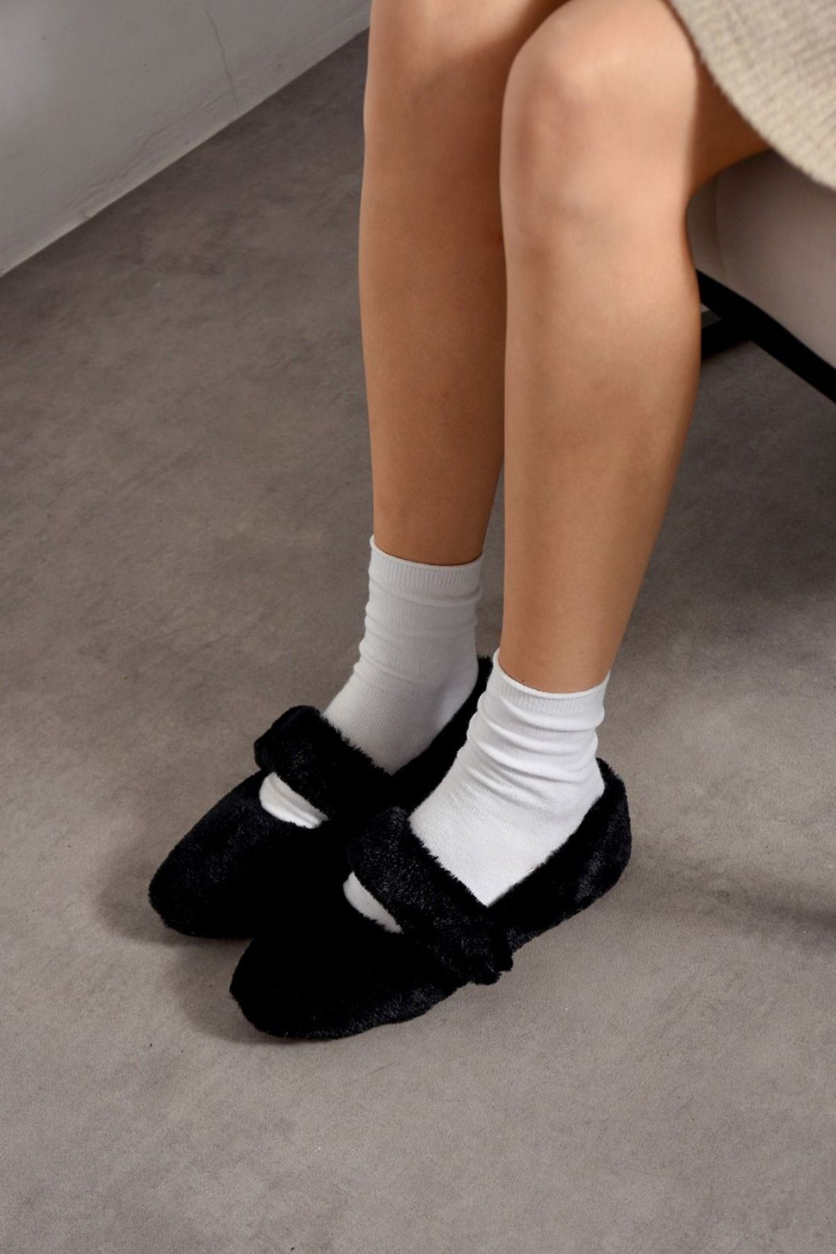 Yumina Siyah Bantlı Peluş Ev Babeti