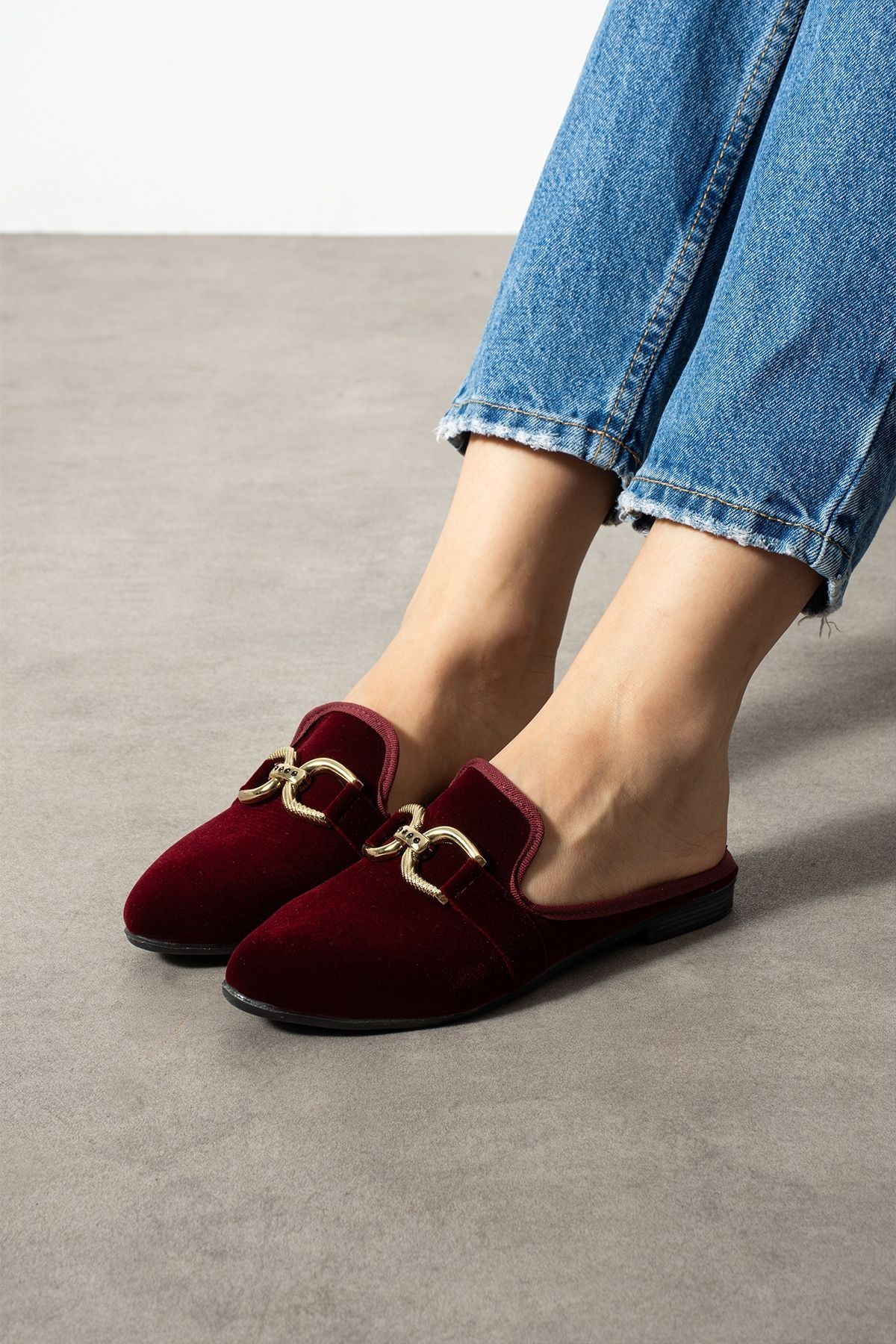 Zayo Bordo Gold Tokalı Kadife Dokulu Elegant Nişan Çeyiz Bohça Misafir Ev Terliği